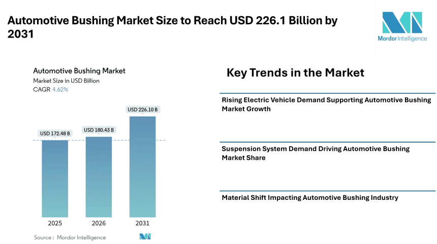 Automotive Bushing Market Size to Reach USD 226.1 Billion by 2031, Automotive Bushing Market Growth Supported by EV Demand and Suspension System Expansion – Mordor Intelligence