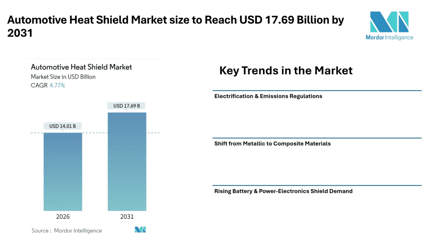 Automotive Heat Shield Market size to Reach USD 17.69 Billion by 2031, Shaped by Emissions Compliance and Electrification Trends – Mordor Intelligence
