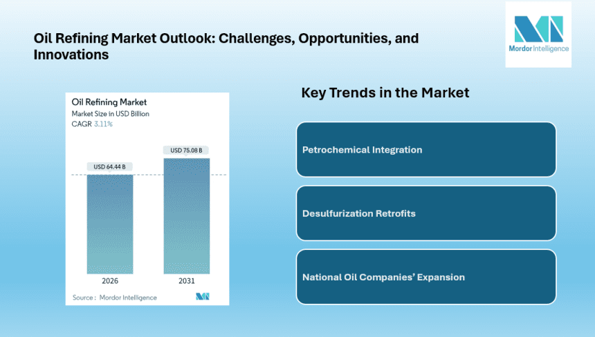 Oil Refining Market to Reach USD 75.08 Billion by 2031 Driven by Petrochemical Integration and Asia-Pacific Expansion | Says Mordor Intelligence