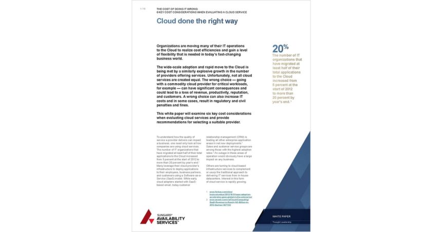 As an IT executive you need to select a cloud service that offers availability and uptime characteristics that match your applications’ tolerances for downtime. In addition, you need the ability to continue to support legacy applications that are not ready to be moved to the cloud. This white paper will examine six key cost considerations when evaluating cloud services and provide recommendations for selecting a suitable provider.